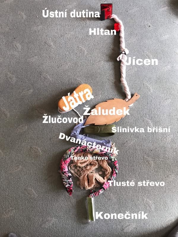 Žáci měli za úkol vytvořit doma model trávící soustavy z libovolného materiálu a přidat popisky.